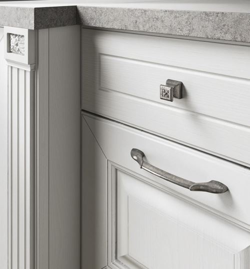 Gałka Alexander z kolekcji Marella Design to model o wyjątkowym designie. Dolna część wyróżnia się oryginalnym, nietypowo zaokrąglonym kształtem, natomiast górna pozostaje prosta i została ozdobiona subtelną dekoracją kwiatową. W zależności od wybranego wykończenia gałka zyskuje różny charakter – w kolorze Starej Stali prezentuje styl Country, natomiast w nowym wykończeniu Golden Shadow nabiera eleganckiego, glamour’owego wyrazu. Gałka Alexander stanowi efektowną ozdobę każdego mebla, na którym zostanie zamontowana.
