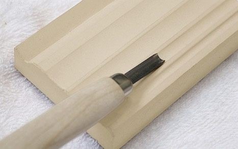 Idealny do ostrzenia i wygładzania wszelkiego rodzaju noży snycerskich: żłobaków z fazą zewnętrzną lub wewnętrzną oraz dłut kątowych. Część tylna nadaje się również do obróbki płaskich dłut stolarskich. W zestawie z przyrządem do czyszczenia powierzchni kamienia.