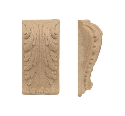Zastosowanie: kapitel z dekorem liścia akantu z pyłu drzewnego – ozdoba wykonana z motywem liścia akantu, stosowana w dekoracjach stylizowanych kuchni, mebli, kolumn i pilastrów, dedykowana do wykończenia wnętrz.
