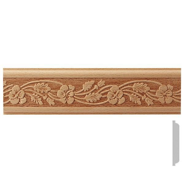 Listwa z drewna bukowego, posiada szeroki wybór wzorów od prostych do bardziej złożonych ornamentów takich jak figury geometryczne, rytmy festonów, wieńce kwiatowe oraz wzory Art Deco. Możliwość barwienia bejcami spirytusowymi i wodnymi oraz lakierowania pozwala na atrakcyjne wykończenie. Produkt jest wszechstronny i znajduje zastosowanie w różnych aranżacjach wnętrz oraz zdobieniach mebli.