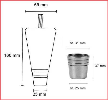 Noga meblowa wykonana z wysokiej jakości drewna bukowego w naturalnym kolorze, wyposażona w solidną, chromowaną metalową stopę. Klasyczna, stożkowa forma sprawia, że doskonale sprawdzi się zarówno w nowoczesnych, jak i klasycznych aranżacjach wnętrz. Naturalne drewno bukowe zapewnia trwałość i elegancki wygląd, a podstawa nadaje całości nowoczesnego charakteru oraz chroni podłogę przed zarysowaniami.