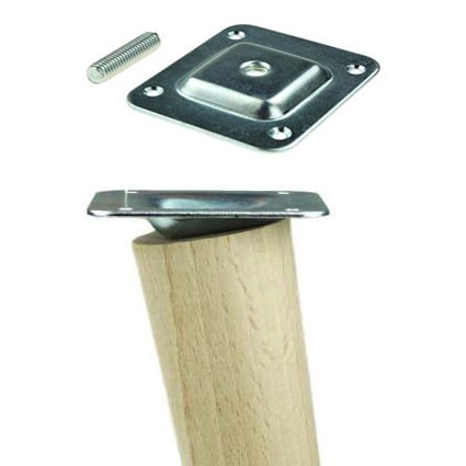 Bukowa noga meblowa, toczona i skośna pod kątem 10 stopni, wykonana z wysokiej jakości drewna bukowego w naturalnym kolorze. Wyposażona w solidną stalową płytę montażową o wymiarach 66 x 58 mm, którą łatwo przykręcić do spodu mebla, fotela lub stołu. Noga posiada szpilkę gwintowaną M8 o długości 30 mm, co zapewnia stabilny i trwały montaż.