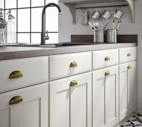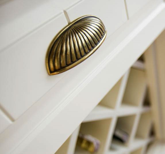 Uchwyty muszelkowe od wieków zdobią angielskie meble – od kuchennych szafek, przez kredensy, aż po komody. Model Diana doskonale pasuje do drzwi kuchennych, szuflad, szafek i innych elementów wyposażenia wnętrz. Tradycyjnie montowany poziomo, dziś coraz częściej instalowany jest również pionowo, zwłaszcza na frontach szafek. Bez względu na sposób montażu, uchwyt Diana łączy efekt dekoracyjny z praktyczną funkcjonalnością.