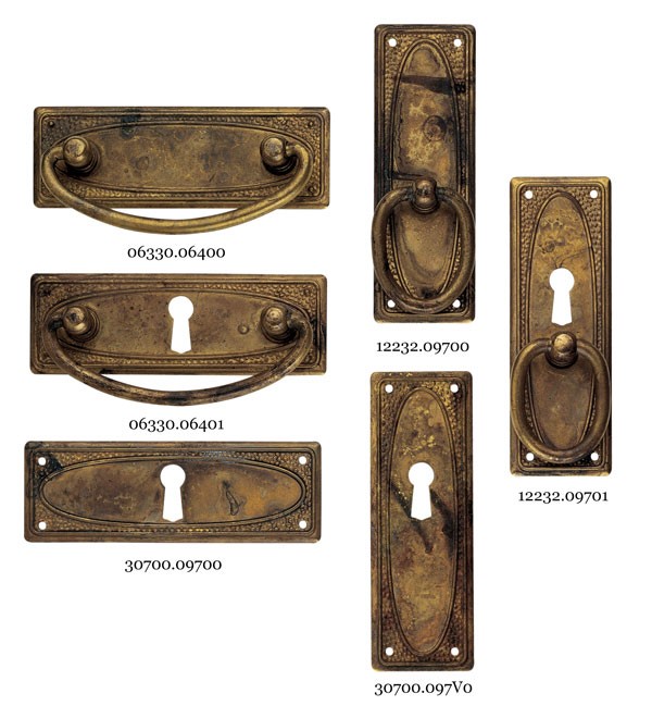 Uchwyt meblowy w formie stylowej kołatki wykonany z blachy mosiężnej w wykończeniu patyna na mosiądzu doskonale pasuje do klasycznych mebli o eleganckim, retro charakterze. Owalna rozeta z dekoracyjnymi przetłoczeniami oraz masywny, ruchomy pierścień tworzą wyrazisty detal, który podkreśla linię frontów drzwi i szuflad.